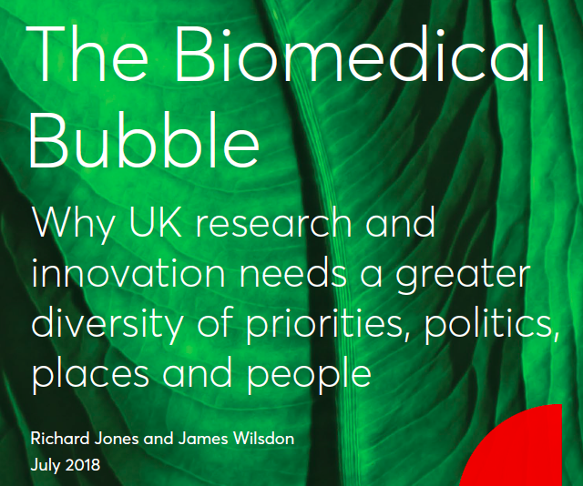 La Fundación Nesta acaba de publicar un impresionante informe en Reino Unido titulado «La burbuja biomédica: Por qué la investigación y la innovación en Reino Unido necesita una más amplia diversidad de prioridades, políticas, localizaciones y personas»