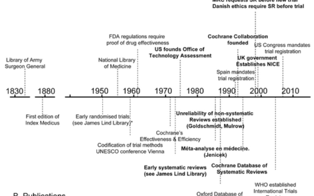 Hace casi cuarenta años, un cuarto de siglo después de que los ensayos aleatorios se hubieran aceptado ampliamente, Archie Cochrane reprochó a la profesión médica no haber conseguido organizar un «resumen crítico, por especialidad o subespecialidad, adaptado periódicamente, de todos los ensayos controlados aleatorios relevantes«.