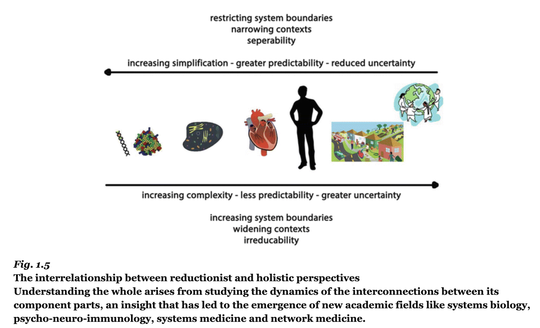 (1) El holismo es una perspectiva científica basada en el estudio de las estructuras y la dinámica de redes en todas las escalas: molecular, celular, órgano, persona, familia, comunidad y sociedad