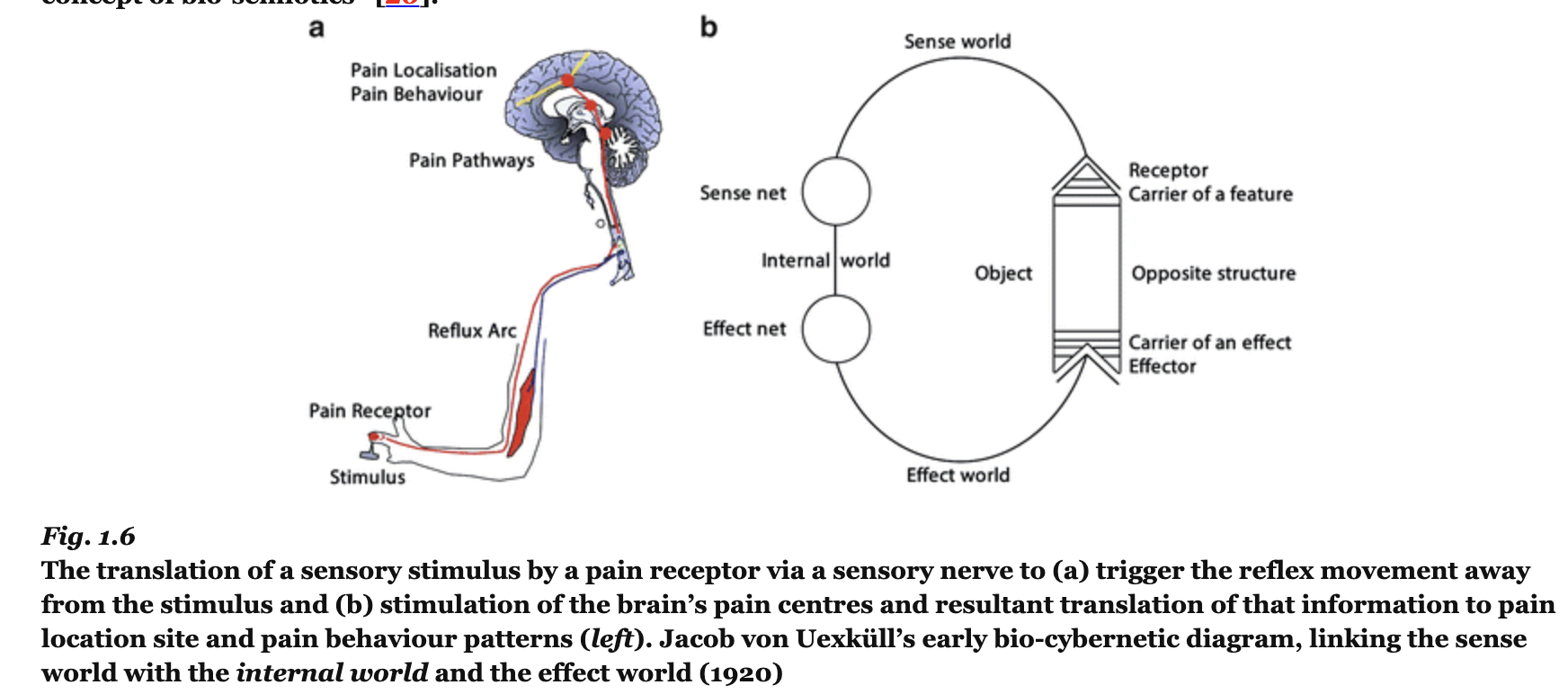 Jakob Johann von Uexküll  fue más allá y describió el modelo bio-cibernético: los seres vivos responden a  los estímulos en su propio medio circundante (lo que denominó Umwelt) y descodifican las señales de forma significativa para generar una respuesta siempre individual y subjetiva, creando lo que Husserl llamó «el propio mundo interno». Esta habilidad para interpretar de manera individual y subjetiva los estímulos objetivos, físicos o químicos, en el propio mundo interno, es lo que se define como bio-semiótica.