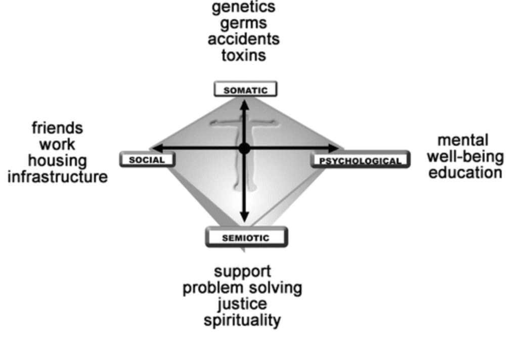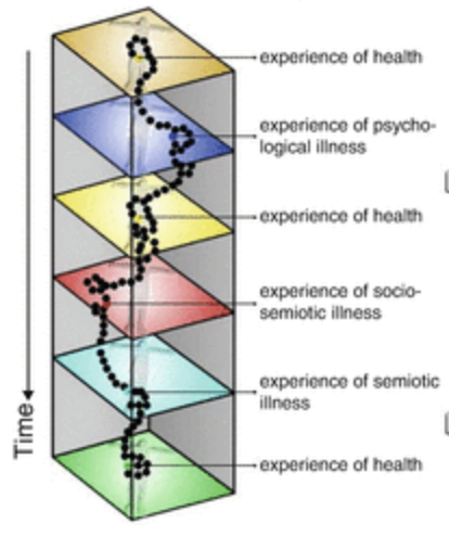 La salud y la enfermedad sería el resultado de la compleja interrelación de los factores somáticos, sociales, psicológicos y semióticos o cognitivos. Los estados experienciales que denominamos salud y enfermedad suelen ocurrir cuando existe una alteración somática obvia pero también en su ausencia.