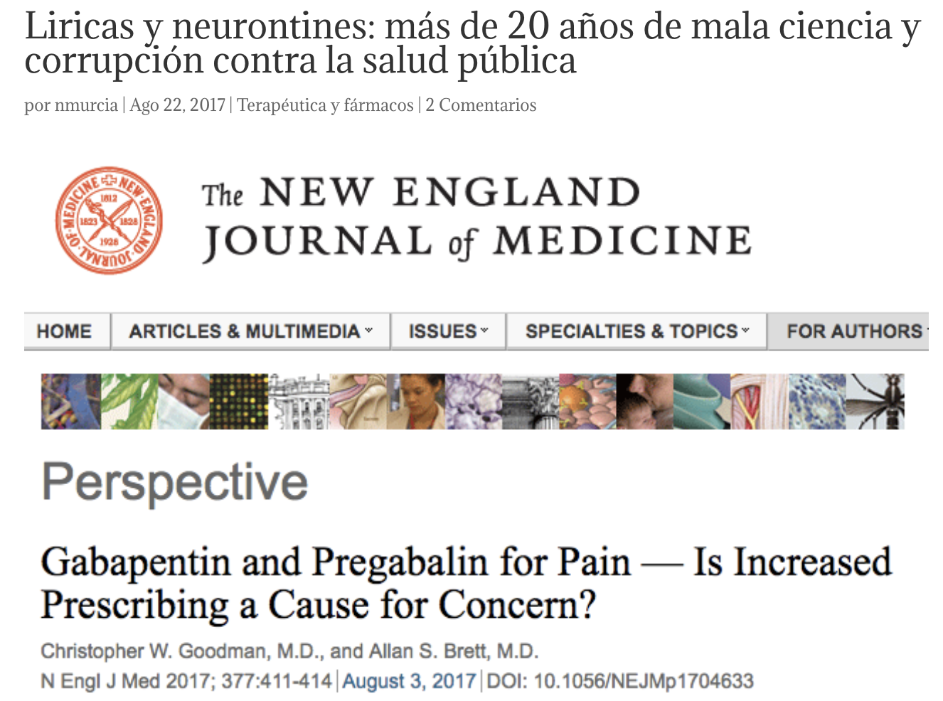 En 2017 nos hacíamos eco de un artículo publicado el NEJM donde los autores mostraban su preocupación por su persistente sobreprescripción y aprovechábamos para recordar el claro posicionamiento del Des Spence en el BMJ contra su utilización indiscriminada o los artículos que -gracias a sentencias judiciales que obligaron a la empresa a dar acceso a las bases de datos de los ensayos clínicos- demostraron lo descaradamente que se ha manipulado la investigación científica de los gabapentinoides.