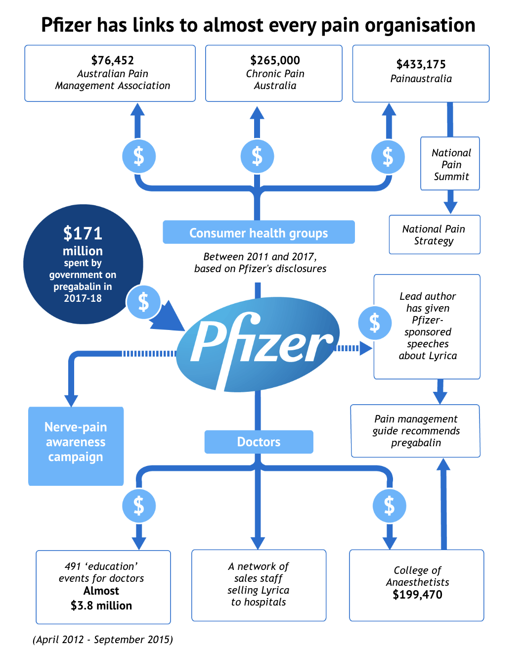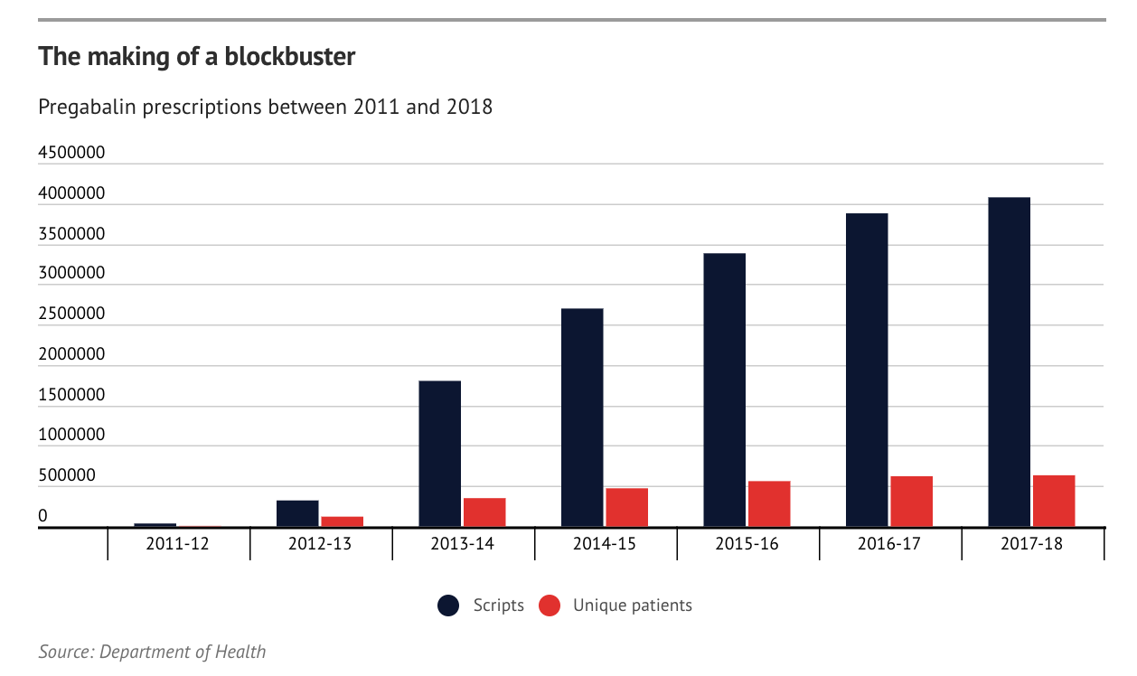 En marzo de 2019, un periódico australiano describía como Lyrica se había convertido en un superventas en Australia gracias a una red de influencia comercial cuidadosamente diseñada por Pfizer.