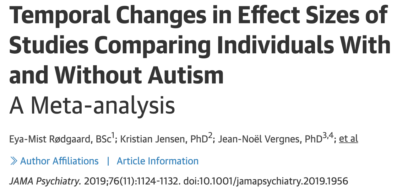 Por ejemplo, el autismo. Los estudios que examinan las diferencias en las medidas psicológicas y neurológicas entre las personas a las que se les ha diagnosticado autismo y las que no lo tienen, han mostrado una disminución de la brecha en los últimos 20 años. O sea, el diagnóstico de autismo está cada vez más cerca de la normalidad aunque su impacto en términos de etiqueta y farmacologización es cada vez más elevado.