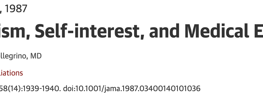 Para Pellegrino esta perspectiva, que podríamos llamar del auto-interés, tendría tres grandes argumentos en contra, cuando hablamos de profesionales sanitarios: